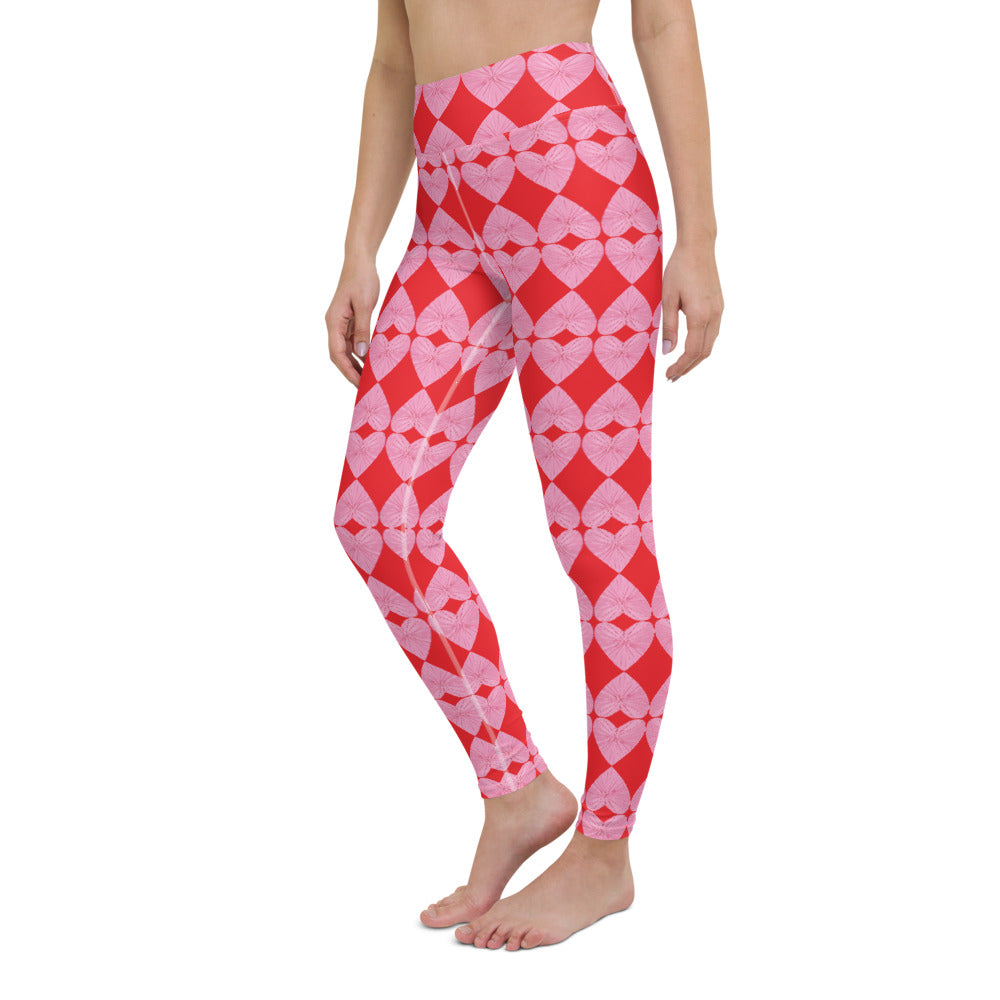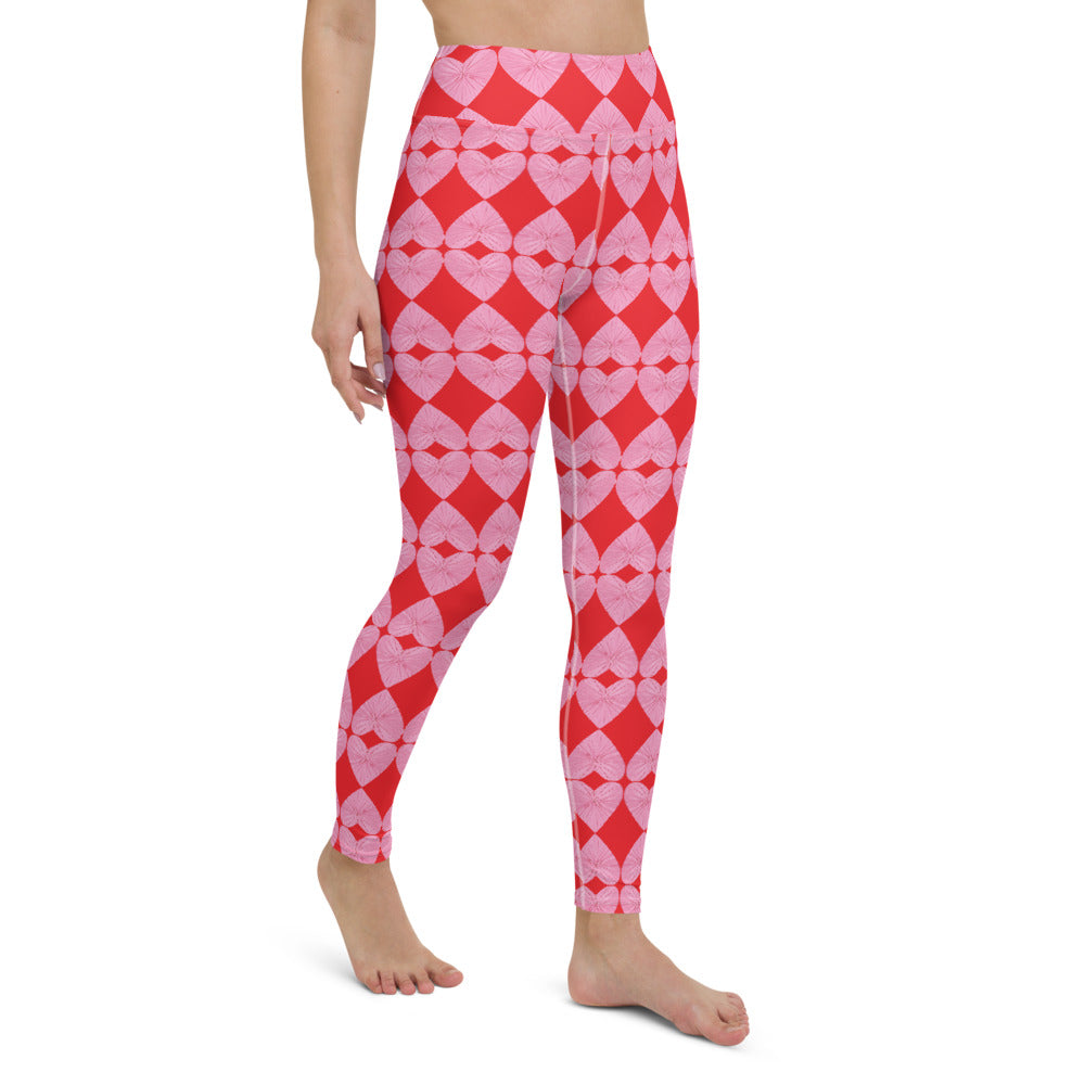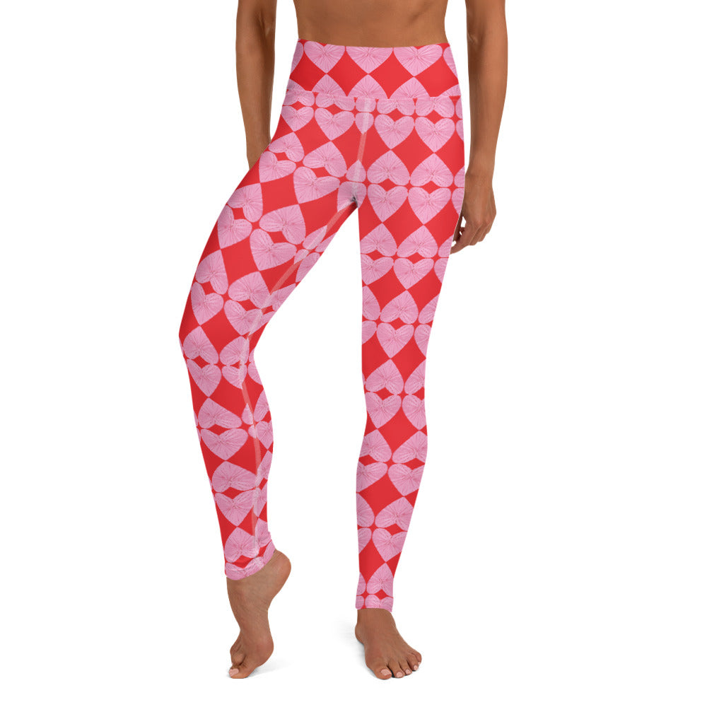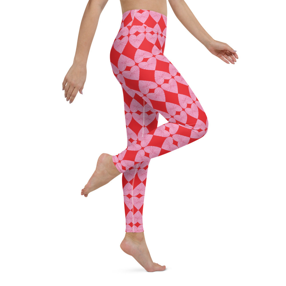 Harlequin Hearts Pink and Red High-Waisted Yoga Leggings